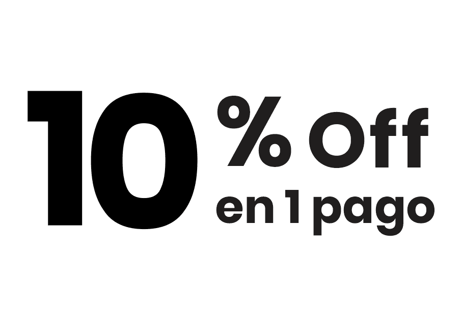 10 off abonando en un pago mediante depósito, transferencia, tarjeta de débito o de crédito en un pago.