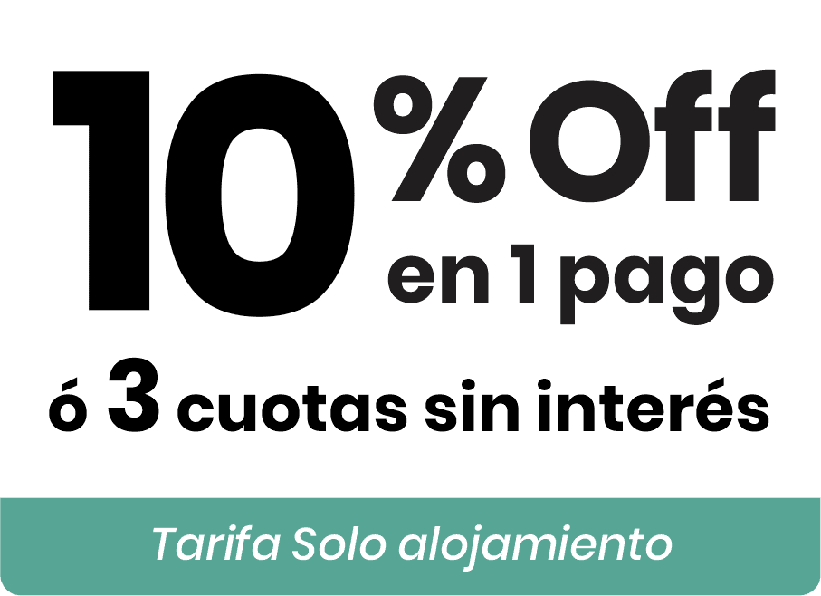 Solo Alojamiento cancelación flexible 10 off abonando en un pago mediante depósito transferencia o tarjeta de crédito en un pago o 3 cuotas sin interés.
